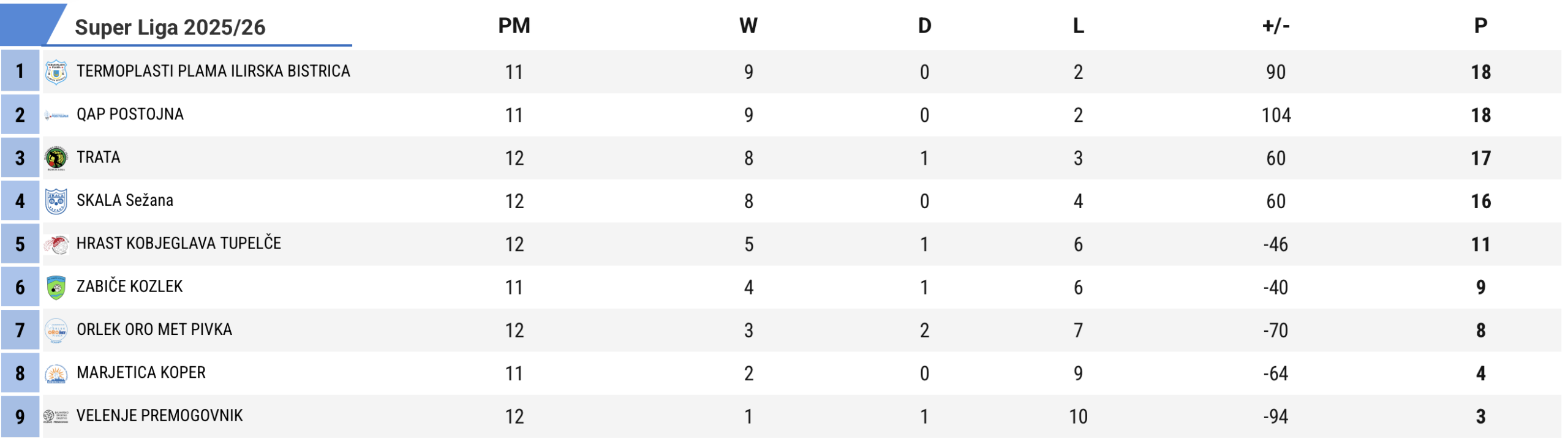 Redni del letošnje superlige se počasi bliža koncu. Glede na trenutno stanje na lestvici je bržkone že znano, kdo bodo udeleženci letošnje končnice, ni pa še jasno kakšen bo končni vrstni red. Kot kaže se bodo za naslov prvaka pomerili QAP Postojna, Termoplasti Plama Ilirska Bistrica, Trata in branilec naslova Skala. V zadnjih petih krogih nas čaka tudi ogorčen boj za obstanek, v glavnih vlogah pa bosta Velenje Premogovnik in Marjetica Koper, ki se bosta med seboj udarila prihodnjo soboto v Velenju. Pozitivno presenečenje te sezone je zagotovo Hrast iz Kobjeglave, ki je letos na domačem terenu uspel presenetiti Ilirsko Bistrico, Skalo pa tudi Trato s katero je včeraj remiziral. Kobjeglavci trenutno zasedajo peto mesto na lestvici, zaostanek za četrtouvrščeno ekipo pa je žal že previsok. V 35. izvedbi ligaškega tekmovanja smo prvič priča dejstvu, da OBZ Ljubljana nima svojega predstavnika v elitni skupini. Državni prvak bo znan najkasneje 12. aprila 2026.
