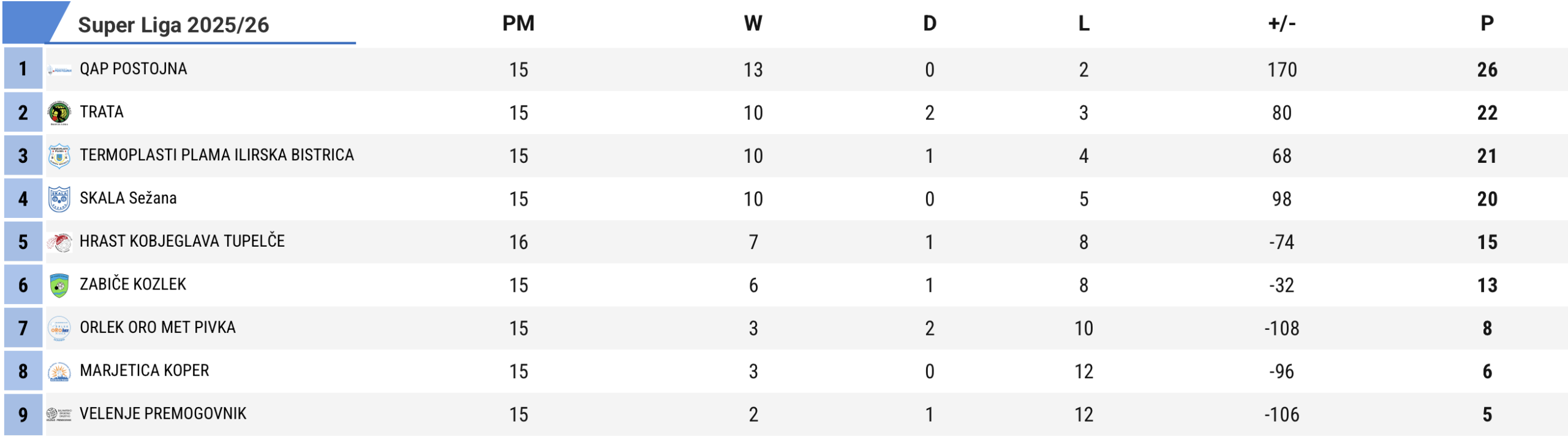 - VELENJE PREMOGOVNIK – QAP POSTOJNA 9:17